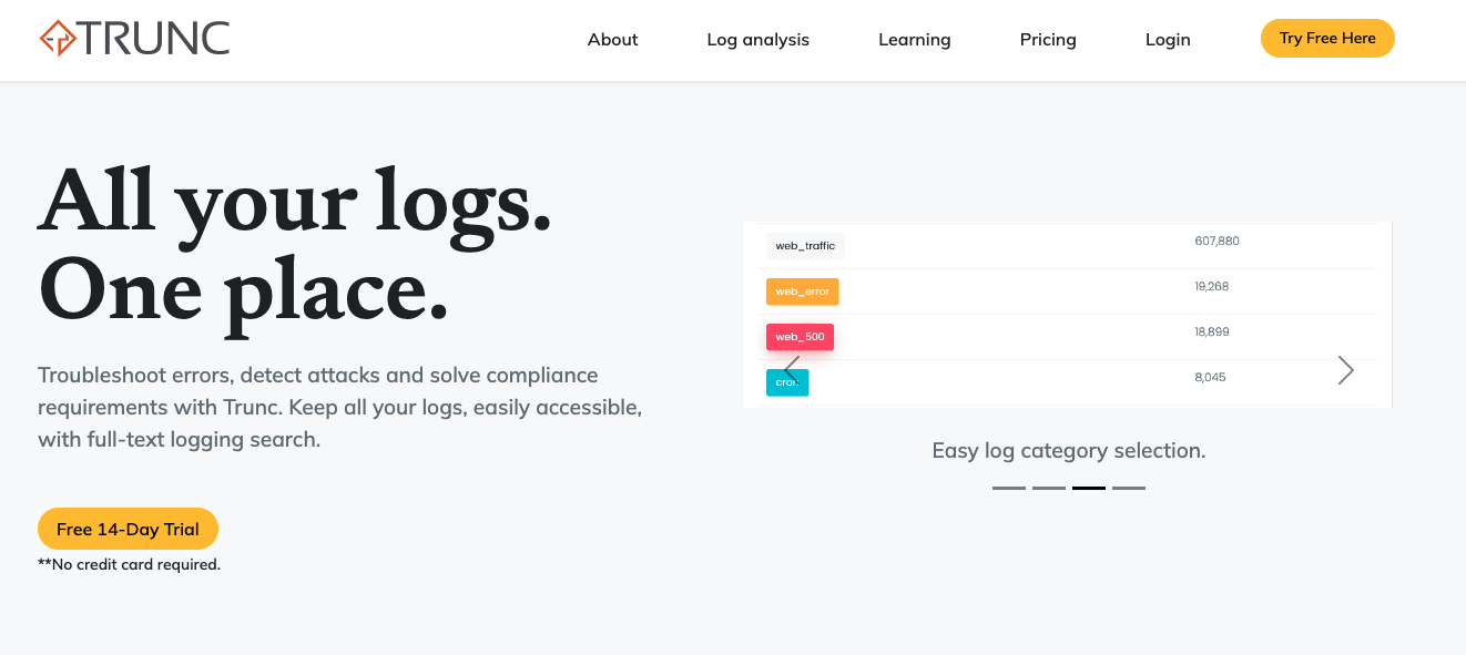 Trunc is a log management platform. Trunc collects logs from various sources and provides a centralized platform to manage, view and analyze those logs. Pretty cool, right?