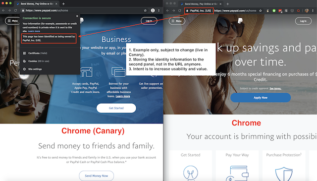 As you look through the examples above you can quickly see what is happening. The treatment of EV certificates is changing dramatically. In earlier versions it was easy to point out those sites that had gone through higher scrutiny in their validation process, and in theory it should have given web users a higher degree of confidence in the legitimacy of the site.
