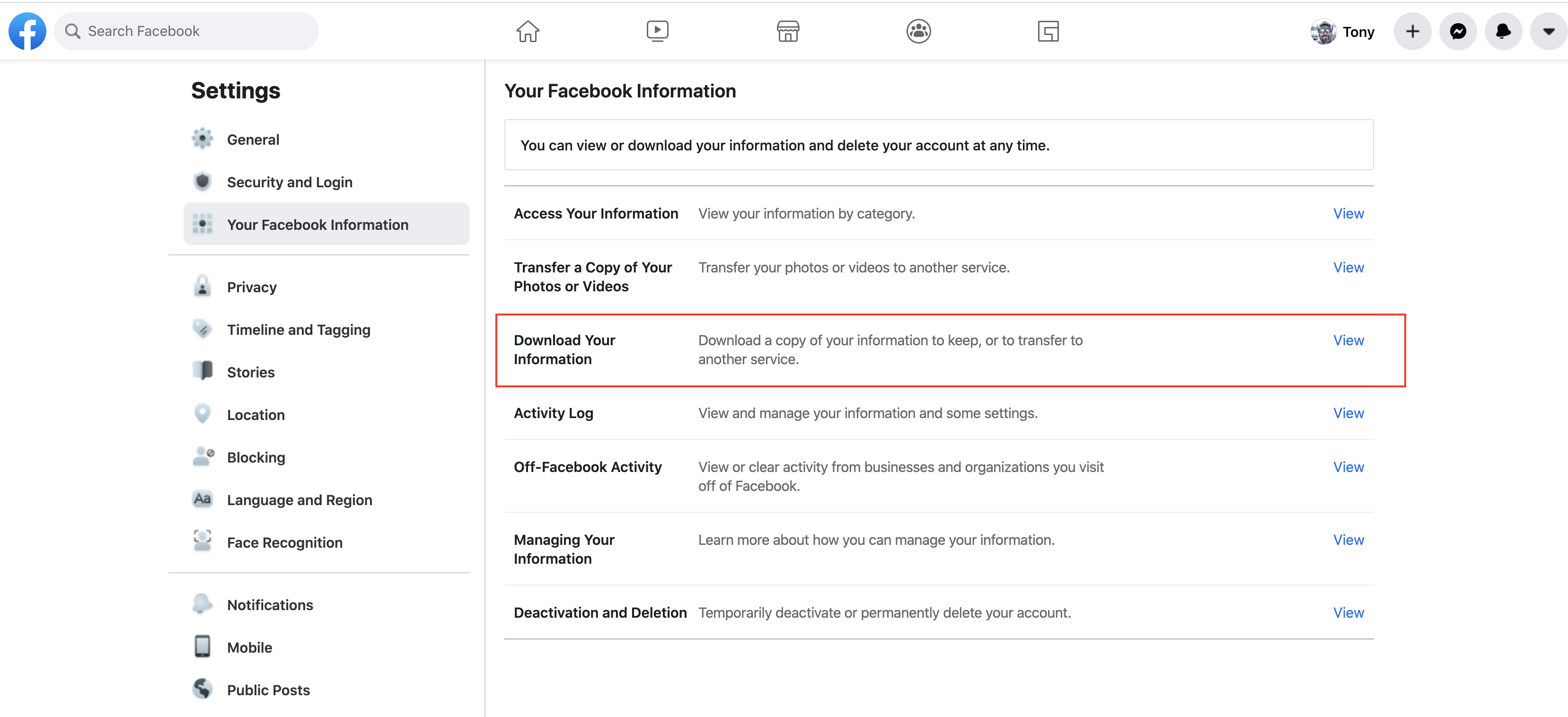 Find the section that reads - "Your Facebook Information"