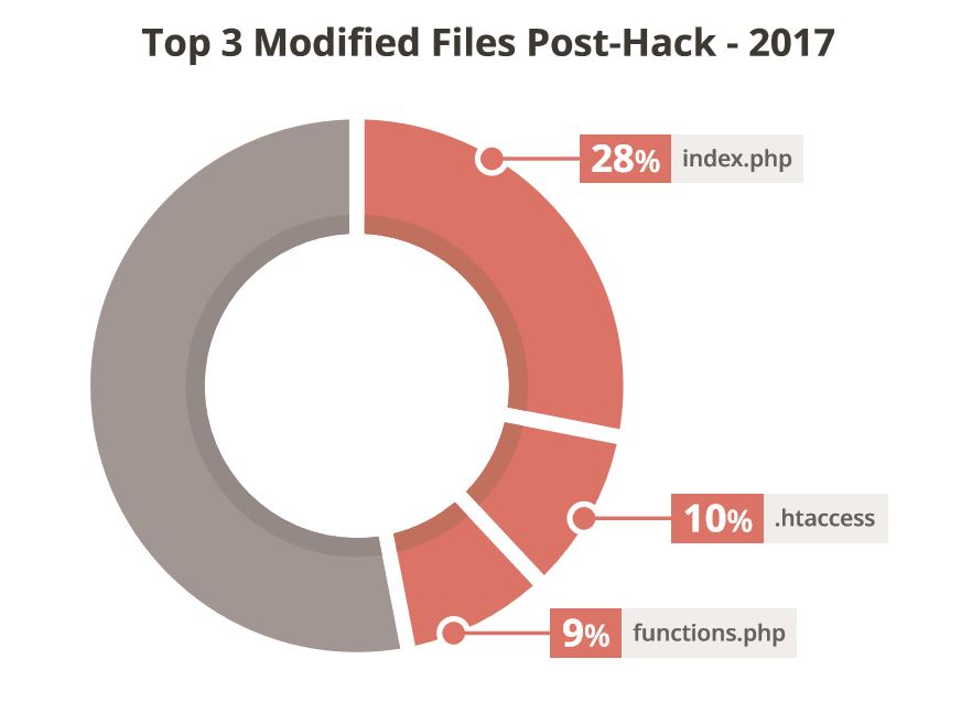 For example, the Top 3 modified files were the index.php (28%), .htaccess (10%), and functions.php (9%) file. The report outlines how each of the files are being leveraged, specifically for what malware families. SEO spam is deployed specifically in the .htaccess and functions files, while function files are mostly leveraged for malware distribution (e.g., drive-by-downloads), backdoors. Index files are more multi-purpose, and are used for server scripts, malware distribution and a few other variations.