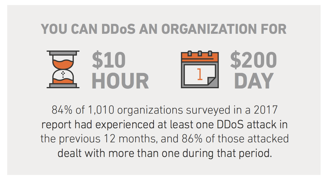 An example of a service designed to disrupt your online presence we can think of a DDoS attack - an attack designed to disrupt your infrastructure / websites availability (i.e., the site / server is down - not functioning). When you think of the potential impacts of a service like this to the everyday online brand, it can be devastating. Think for a moment the adverse affects of your online store going off line? What would 1 hour, 1 week, 1 month of a down site do to your business? At Sucuri we built technology specifically designed to help organizations mitigate these types of attacks. This report highlights specifically the Cybercrime-As-A-Service market, and shares list prices as low $10 / hour for an DDoS attack up to $200 / day. The exceptionally low cost highlights how cost-effective it is for someone to maliciously disrupt your organizations ability to service your audience. The exceptionally low cost is coupled with a Dot It For Me (DIFM) model making it that much easier for a bad actors to effectively implement the tools and techniques perfected over the years, in essence lowering the previously required technical aptitude.