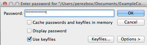 mount. This will present you the dialog to add your password and keyfile: