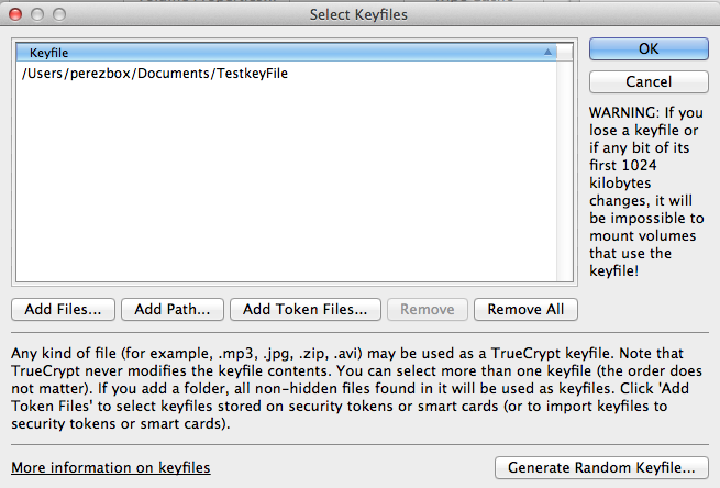 select keyfile dialog to make sure it gets tied to the container created: